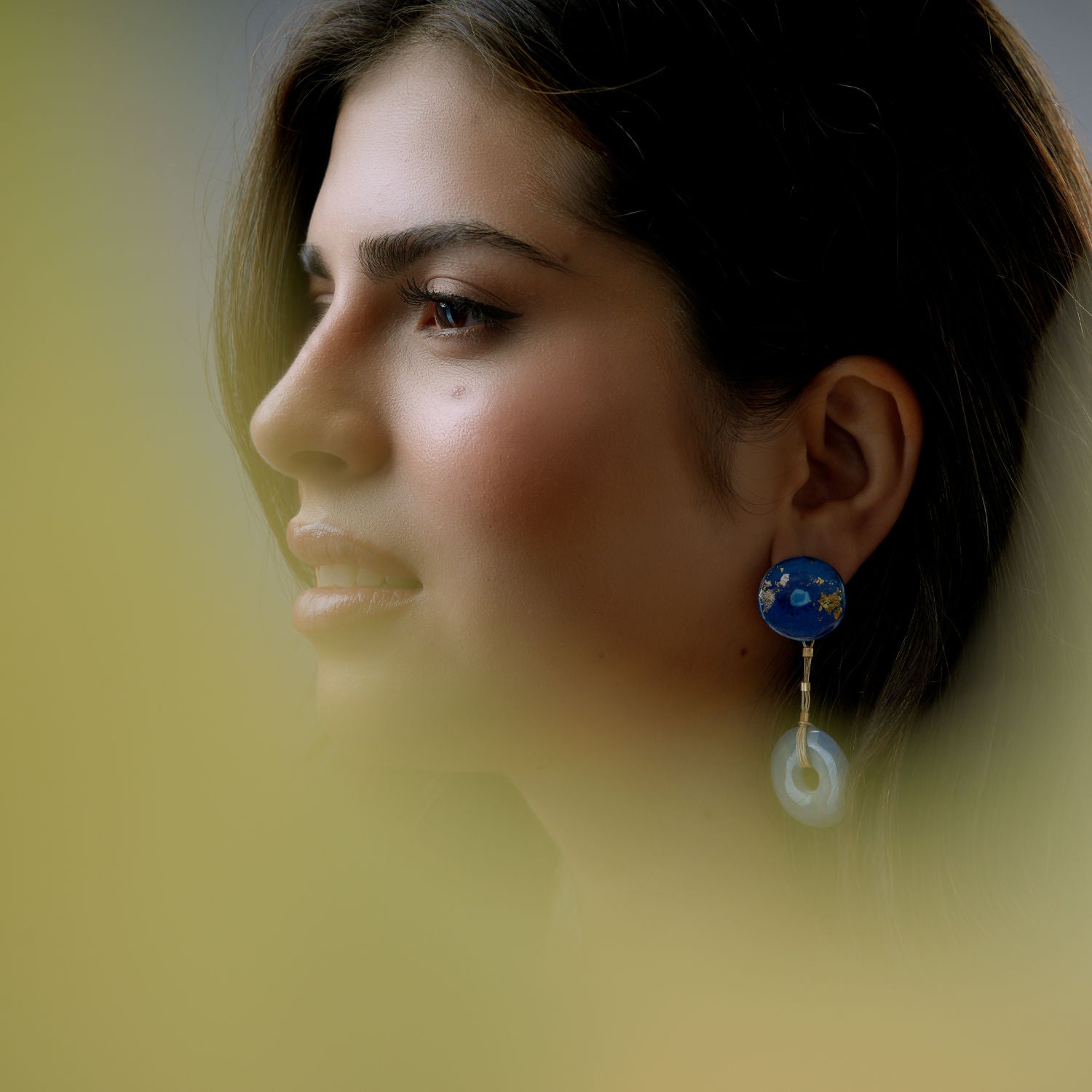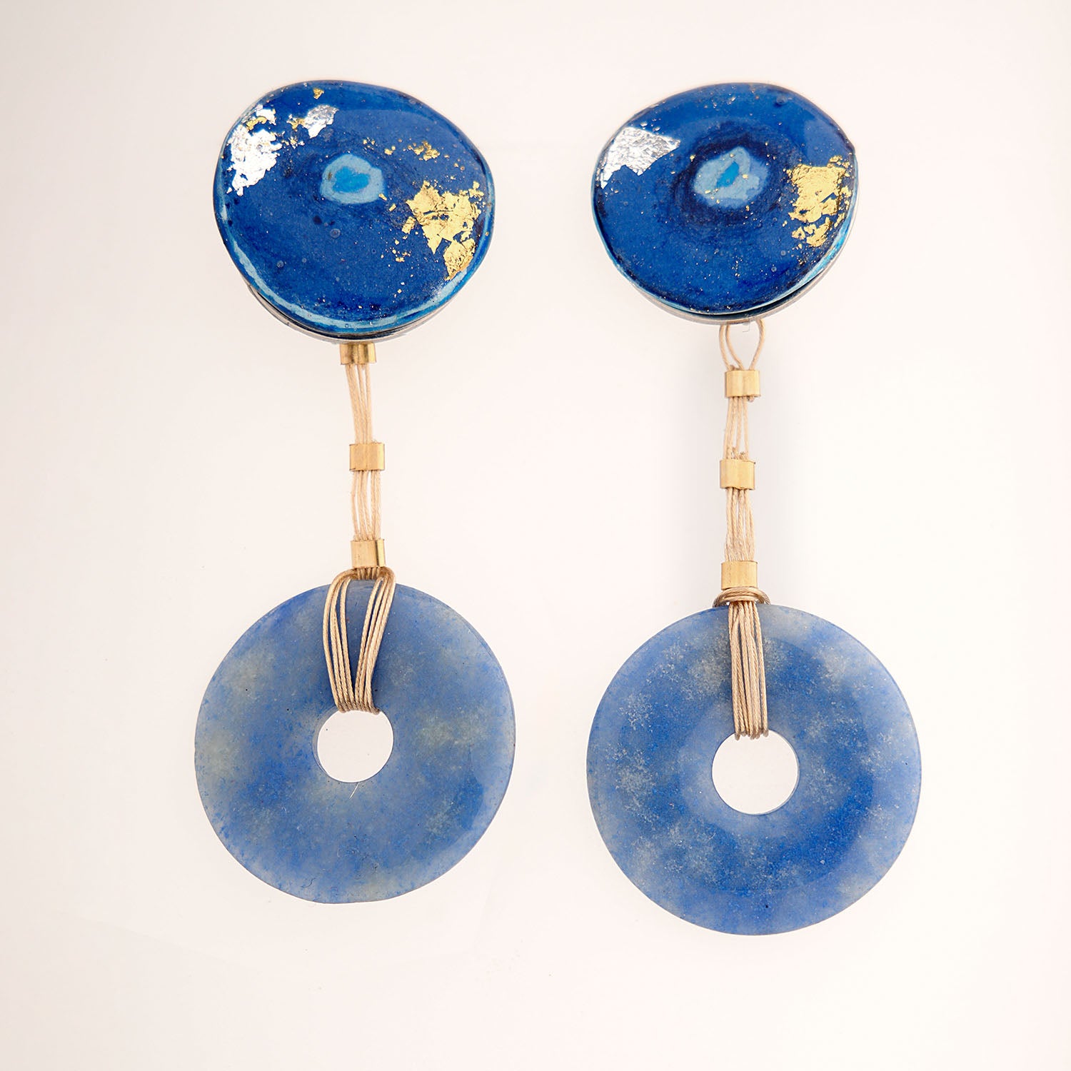 Espectaculares pendientes, donde el trabajo a mano del papel se confunde con los tonos azules de la piedra Dumortierita, dándole un toque elegante y original
